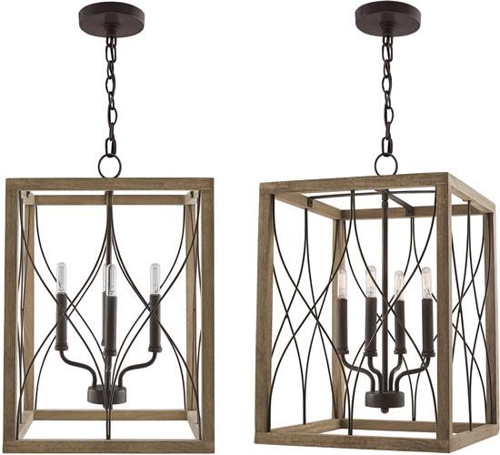 Designed to infuse farmhouse character, the Tybee 4-Light Foyer combines wood and metal in a rectangular frame. The handcrafted, distressed finish is accented with a stylized motif, pairing clean lines with curves.