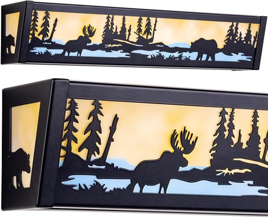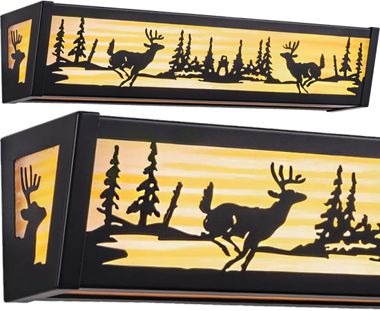 The National Parks Collections from Vaxcel Lighting all feature nature inspired scenes in cut steel. These are the lights you expect to see in one of the historic lodges. The Bozeman Collection has pine trees with a grizzly bear. The Bryce Collection has pine trees with a deer. The Yellowstone Collection has pine trees with a moose. The Yosemite Collection has just the pine trees. Made to mix and match, they are all finished in rustic Burnished Bronze with warm Amber Flake glass.