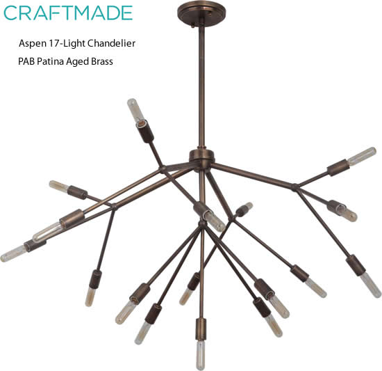 Strong lines set in a random pattern give the Aspen light fixture a pleasant, organic quality. The light, open structure creates a positive flow of light that energizes the space and creates pleasing shadow patterns across every surface in the room.