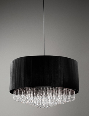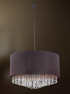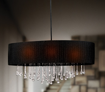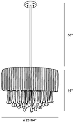 Comes with 6", 12" and 18" Extension Rods. A shimmering white or midnight-black drum shade elegantly supports a waterfall of sparkling crystal teardrops. The translucent shade grants an alluring amount of radiance to match the opulent luxury.