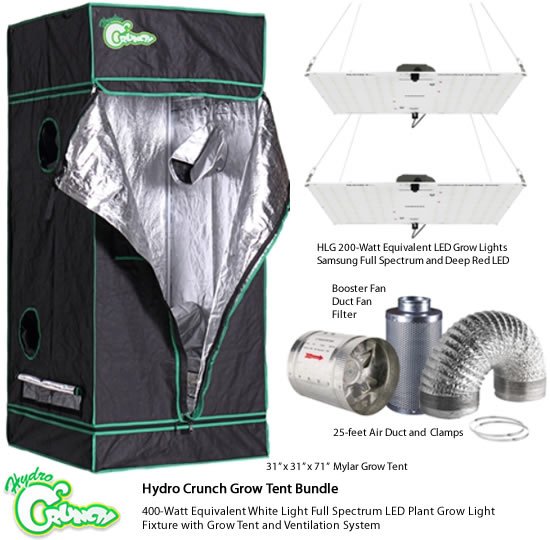 Hydro Crunch White Light Full Spectrum LED Complete Grow Tent System Bundles