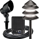 Landscape Lighting Kits are reasonably priced and easy to install. Kits are available with spot lights, flood lights or both.