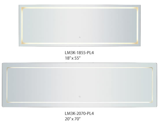 A sleek plate of glass floats in front of a special co-extruded remote phosphor LED channel hugs a high-quality mirror in 3 configurations. The LED channel provides an amazingly slim profile less than 1 inch deep with flawless, even illumination and great color reproduction. Comes complete with 3.9watt/ft of LEDs to create 300lms/ft or 7.8 watt/ft of LEDs to create 600lms/ft available in 4 CCT options and 2 CRI options.