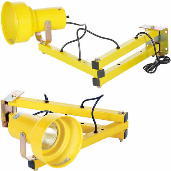 Lights minimize freight damage while expediting loading and unloading operations. Provides uniform visibility inside trailers or around dock areas. These dock loading lights are UL listed. Incandescent lights, offer good color, low replacement cost and turn on instantly even in cold environments. It utilizes a 90 watt bulb. Adjustable arm knuckle joint allows vertical and horizontal positioning.