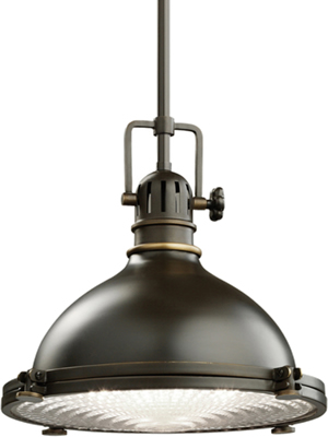 Kichler's Hatteras Bay Collection is inspired by classic industrial lighting. Many have clear or layered clear and white glass Fresnel lens. These pendants, rail lights, wall brackets and ceiling fans coordinate with rustic, urban or coastal interiors.