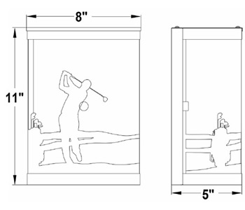 Perfect for the golf enthusiast, the Links 8-inch wall light lets you showcase your passion both inside and outside your home. Featuring a subtle yet stylish golfer motif showcasing your interests. This versatile fixture adds a touch of personality to your entryway, patio, garage, or even a dedicated sports room. The classic black finish and frosted white glass complement any decor, while providing soft, diffused light.