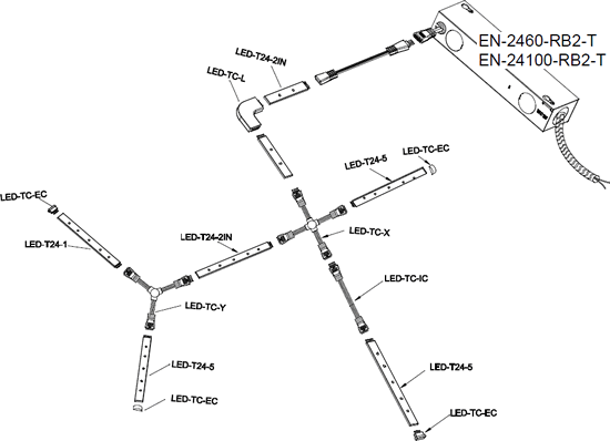 9. Terminate each separately powered run with an end cap. Cut end caps or male end caps are the available choices for cut or uncut sections respectively.