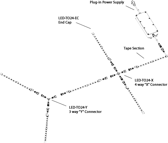 7. Connect remaining sections using 1-ft and 5-ft sections of tape light or connectors.
