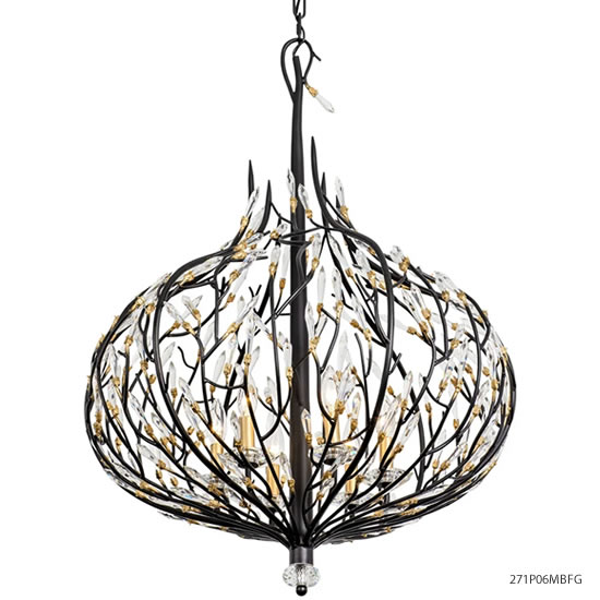 Varaluz Bask is a collection of unique crystal pieces that meld nature inspired details with premium crystals. Choose Matte Black finish with French Gold accents or glimmering Gold Dust finish with silvery sparkles.