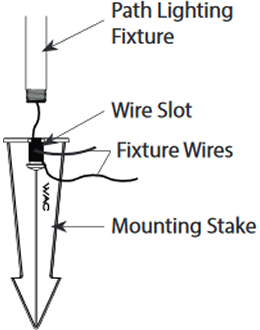 8. Screw the fixture onto the stake provided, leading the wire from the fixture through the wire slot in the stake.